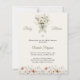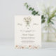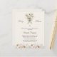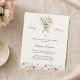 An elegant soft ivory background, decorated with a floral bouquet with bow in muted green and ivory. Personalize and add a name and party details. Text: Baby in Bloom.