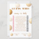 This design was inspired by soft golden balloons floating around a joyful celebration. The warm neutral palette and clean modern layout give this game card an elegant feel, making it a fun and stylish way for guests to guess who said what—mommy or daddy.