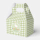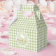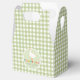 This cute baby shower favor box design features a silly goose, with ‘thank you’ in fun, colorful typography, and a farmhouse green gingham pattern in the background. The perfect addition to any gender neutral baby shower.