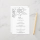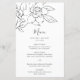 Elegant linje konst Bröllopsmeny med en enkel blyertsteckning av en magnoliablomma i en medelgrå över en vit bakgrund. Dessa vackra blommiga Bröllopsmenyer är tryckta på pappersark för ett budgetvänligt alternativ och är bra för ett vår- eller sommarbröllop.