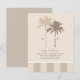 En avspänd men polerad spara-datum-inbjudan med tonala palmkronor i varmt sand och taupe på en mjuk elfenbensvit bakgrund, med en klassisk randpanel vid basen. Ett banderolldetalj tillför en charmig finish. Perfekt för strandbröllop, Florida-fester eller någon tropisk firande. Alla namn, datum, plats och webbplats är fullt anpassningsbara.