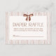 This neutral striped diaper raffle card features a brown watercolor bow and elegant typography for a soft, elevated baby shower detail.
