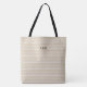 Denna krämfärgade och beige randiga totebag är perfekt för att ge bort och för vardagsbruk. Rena, neutrala ränder i kombination med ett personligt monogram gör den genomtänkt utan att vara flashig. Den fungerar lika bra som en brudtjänstgäva som den gör för arbete, ärenden eller helgresor.