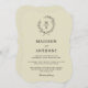 Ett smakfullt och klassiskt val i bröllopsinbjudningar, den här designen ger en enkel elegans i textlayouten och klammerformen stil. En enkel öppen lagerkrans av sketsade löv omger den monograminitiala formen av bruden och trumman på en neutralt-mediets beige bakgrund. Eleganten är en enkel textmall som du kan använda för att anpassa med dina bröllop-uppgifter. Denna inbjudan är ett mångsidigt val för bröllop när som helst under året och för vilken plats som helst i bröllop, oavsett om det är en högtidlig ceremoni i religiösan eller en sekulär affär vid en bankethall, vinerier, museer, restauranger, privat klubb eller ett bröllop utanför naturen. Den här inbjudan finns i en mängd olika former av stilar (som visas i den notformen) och i många olika färg, pappra typer och vikter.