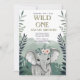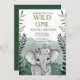 Vi firar nystarten med vår neutralt safari-temade inbjudan med handdragna elefanter och vattenfärgad löv. Anpassadet Text/färg till fullo. Perfekt för naturälskande föräldrar som vill ha gender-neutralt-elegans.