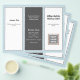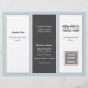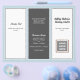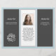 Trefaldig broschyr i mörk grått, ljusblå och vit. Anpassa sex avsnitt som innehåller en logotyp på framsidan, QR-kod och fotomall inuti. Mittpanelen har en ställe för ett personligt foto för avsnittet "om". Du kan fritt använda "redigera"-området om du vill ändra och/eller flytta typsnitt, eller kontakta mig om du vill ha hjälp.