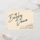 Modern, minimal middagsinbjudan från stil med rubriken "Födelsedag middag" i ett penselskript. Utformning utanför mitten med information om din händelse i nedre hörnet av högerna. Svart text på gräddbakgrunden i färg.