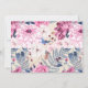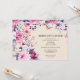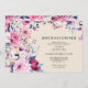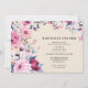 Elegantens middagsbjudanden med ett botaniskt ram. Svart text på en elfenbensbakgrund omgiven av blommor i röda och blå nyanser av rosa.
