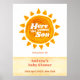 Cute enkla minimalistisk "här kommer barnduschinbjudan", barndusch party-dekoration, välkomstskylt för babydusch, design med vattenfärg nedbränd orange sol och solskensdeka med gult och orange vattenfärg rand känns som sandströköken. Perfekt för pojke, solskenstema för babydusch. Du kan anpassa text och färg.