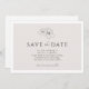 Den här chicen och den moderna varma beige och vita bröllopsinbjudan har blommigt faux guld inslag vid sidan av elegant typografisk text. Den här enkla utformningen med contemporaryn typsnitt är för det moderna paret snyggt och elegant.