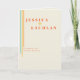 Följ dina gäster genom din speciella dag med vårt retro bröllopsprogram. Programmet har en ljusgul bakgrund med tre vibrerande remsor i teal, gult och orange till vänster och tillför en aning samtida elegans med en nostalgisk vrid. Rubriken presenteras i fet orange text, med en särskiljande gul "+"-symbol för "och" som ger tydlighet och stil. Insidan i programmet kan också anpassas så att du kan placera din anpassade text. På baksidan av programmet visas en slående tealfärg som helt kompletterar framsidan. Perfekt för par som vill ha ett unikt och färgstarkt sätt att dela evenemangsordningen och annan viktig information med sina gäster.