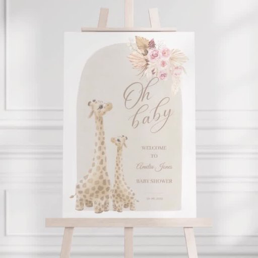 Neutralt Pampas Grass Giraffe Baby Shower Invati Inbjudningar
