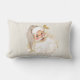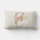 Dekorativ kudde för helgdag för jul för vintageVictorianjultomten med Santa i taupehatt med för glitterjärneken för fauxen guld- löv på en taupe görade randig bakgrund.