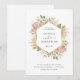 De här fantastiska bröllopsinbjudningarna har ett faux guld-geometriskt ram omgivet av lush, neutralt med vattenfärg i neutralt, färg med jordtoner som beige persika, dammig ro och mjuk grönt med accenter och löv från guld. En elegant boho-blommigt ser ut som en vit bakgrund.