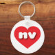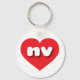 Den här nyckelkedjan har ett pulserande rött hjärta som innehåller det feta, vita, rundade nedre fodral brev nv, en lekfull förkortning för tillståndet Nevada, silver.