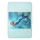 En stor vacker pärla håller en blå sjöjungfru upp till havs yta.