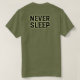 A vibrant retro-style illustration featuring a black video game controller silhouette against a classic 80s striped sunset. The bold text "NEVER SLEEP" perfectly captures the dedicated hardcore gamer lifestyle and late-night gaming sessions