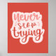 Never Stop Crying Positive Quote Red Inspirational Poster