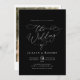 enkel svartvit bröllopsinbjudan med elegantens vita skript. Du kan redigera text, bild och färg.