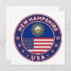 Badge of New Hampshire with flagga of New Hampshire and flagga of USA färg, rundad form. Emblem av New Hampshire. Förseglingen av New Hampshire. Samling i USA Stater.