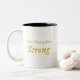 "New Hampshire Strong" Two-Tone Coffee Mugg påminner om contemporaryns designtrender samtidigt som man firar New Hampshire:s återhämtningsförmåga och anda. Den här mugg blandar sömlöst en minimalistisk elegans med otrevliga budskap med otrevliga budskap. Den är utformad med ett ivrigt öga för modern estetik. På framsidan av mugg visas den feta typografin av snyggt med texten "New Hampshire Strong" i den gyllene breven. Användan av accents från guld tillför en aning lyx och prestige, upphöjer mugg visuella dragningskraft och skapar ett mäktigt påstående. Valet av teckensnitt återspeglar modern designkänslighet, med eleganta sans-serif-tecken som förmedlar en känsla av styrka och motståndskraft.