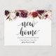 New Home Adress, burgundy blommigt, meddelande Vykort