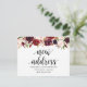 New home adress, burgundy blommigt, tillkännagivan vykort