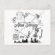 Skicka ett sportiskt utspel från Garden State med det här snyggt New jersey-vykortet! Med en minimalistisk svartvit illustration av den stat som omges av ikoniska sportbilder - fotboll, hockey, fotboll med mera - fångar detta vykort New jersey tävlingsanda och idrottsliga pride. Med markeringar och skyltdetaljer är det perfekt för sportfantaster, resenärer eller andra som ringer till NJ hem.