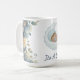 New mom to be baby shower Coffee Mug This design features a delicate watercolor illustration of a baby boy resting on a soft, fluffy cloud, framed by a lush arrangement of midnight blue and champagne gold roses.