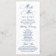 Den nya Mr. och Mrs., Elegant vintage Classy Navy Blue-designtemat, Bröllop Ceremony-programmet i kort (long.). Det är designat med rullans accenttecken som kan vara personlig med anpassningsbar/ personlig för brudens sida, ceremonidetaljer, minnesanteckningar och tack.