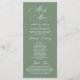 Grönten New Mr. och Mrs., Elegant vintage Classy Sage har utformat temat, Bröllop Ceremony Program in card (long.). Det är designat med rullans accenttecken som kan vara personlig med anpassningsbar/ personlig för brudens sida, ceremonidetaljer, minnesanteckningar och tack.