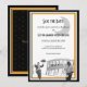 Gör dig redo att släppa loss de goda tiderna på din bröllopsdag i New Orleans med dessa New Orleans Jazz Mardi Gras "Save the Date"-kort. Kortet visar en andra rad-figur och en jazzmusiker på en bakgrund från Franska kvarteret. Baksidan har ett Fleur de Lis-mönster och plats för din egen personliga text. Fyll i din personliga evenemangsinfo på både framsidan och baksidan med hjälp av mallen. Texten på inbjudan är helt anpassningsbar, vilket gör denna inbjudan lämplig för alla evenemang med tema New Orleans. Finns tillgänglig med flera olika kantfärger.
