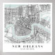 New Orleans Louisiana Blue Water Street Map Poster