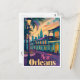 Transportera dig till de livliga gatorna i New Orleans med denna fängslande vintage-resaffisch i bildstil. Med en pittoresk vy över det franska kvarteret i skymningen fångar detta konstverk essensen av stadens livliga atmosfär. Ljust lysande gatlyktor lyser upp de charmiga gatorna och leder ögat mot den livliga stadsbilden i fjärran. Oavsett om du är ett fan av Big Easy eller helt enkelt attraherad av stadssilhuetter i skymningen, kommer denna New Orleans-affisch säkert att tillföra en touch av urban charm. Denna vintage-design kommer att väcka minnen av klassiska resaffischer från en svunnen era. Anpassa detta "save the date"-kort för att göra det unikt för dig så att det passar perfekt för din speciella dag.