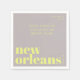 Förhöj din händelse med dessa moderna New Orleans servetter med fet gul typografi på en mjuk grå bakgrund. Ordet "New Orleans" är stilfullt uppdelat på två rader i dekorativa gemener, med anpassningsbar text ovanför för namn, evenemangstitlar eller festteman. Perfekt för bröllop, fester eller någon New Orleans-firande—minimalistisk, elegant och iögonfallande.