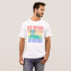 The T-shirt design saying "New Orleans" is colored white with red, orange, yellow, green, light blue and blue ink in it. It is made out of 100% cotton.