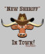Anpassa den här lilla Cowboys "En av en typ" New sheriff in Town Boy's T-Shirt. Den har en Comical Longhorn Steer som bär en Western Cowboy Hat med en Big Guld sheriffs stjärna... omringad av Ord... "Ny sheriff i stan"! Originaldesign av konstnären Kerry Miller!