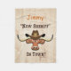 Anpassa den här lilla Cowboys "En av en typ" New sheriff i eget Fleece Blanket! Den har en Comical Longhorn Steer som bär en Western Cowboy Hat med en Big Guld sheriffs stjärna, omringad av Ord..."Ny sheriff i stan" på en Wood Background! Den här lilla pojkens Blanket har en matchande Pillow och Door Sign! Originaldesign av konstnären Kerry Miller!