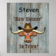Anpassa den lilla Cowboys "En av en typ" New sheriff i stan Poster. Den har en Comical Longhorn Steer som bär en Western Cowboy Hat med en Big Guld sheriffs stjärna, omringad av Ord..."Ny sheriff i stan" på en Wood Background! Originaldesign av konstnären Kerry Miller!