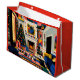 A vibrant, modern Christmas scene blending Memphis Style, New Wave 1980s shapes, Mondrian-inspired color blocking, and Roy Lichtenstein-style pop-art textures. This bold holiday scene features a decorated tree, glowing fireplace, and graphic patterns that make your greeting feel energetic, artistic, and unforgettable. Perfect for design lovers who appreciate a little flair with their festive cheer.