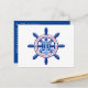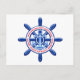 Ett stilrent och unikt födelsedags kort med temat resor runt världen till sjöss. Ett mörkblått ankare mot bakgrunden av ett mörkblått roder eller ratten. Båda är stiliserade som om de vore 3D-objekt. Två anpassningsbara malltexter i röd färg löper runt ratten. Du kan ändra eller ta bort dem oberoende av varandra. De lyder: "HAPPY BIRTHDAY, CAPT. CHRISTOPHER" i den övre delen, "NEW YORK * 40°40'04"N 74°02'26"W * UNITED STATES" i den nedre. Den tredje malltexten "USNYC" är den internationella hamnkoden och finns längst ner på ankaret. En malltext och bilder av ett högt fartyg mot bakgrunden av den uppgående solen på baksidan. Helt anpassningsbart design. Du kan ändra alla texter oberoende av varandra och du kan ändra alla bilder som du vill. Använd knappen "Redigera design" eller " Anpassa" (beroende på fall)