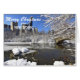 Skicka lite New York till dina vänner och familj den här Julhelgen, med det här fantastiska fotot av snö och is i Central Park med stadskylten bakom det. Texten i vitt överst kan ändras till vad du vill, liksom texten på insidan.