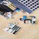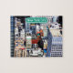 Pussel från New York City med färgbilder av stadens konstnärliga arkitektur, den typiska grönt- och vita stadstecknet och anpassadet "New York City".