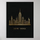 En ren och elegant grafik med ikonen New York City-skylin. Nyckel-landmärken som Byggnaden i Empire state och Frihetsgudinnan görs i en minimalistisk, gyllene konst stil. Texten "NEW YORK" är skriven i ett matchande gyllene teckensnitt nedanför cityscape. Utformningen ställs in mot en solid mörk grått-bakgrund som skapar ett sofistikerat och modernt estetiskt material.