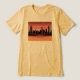 En modern, stiliserad grafik visar New York Citys koniska skylt mot en slimmad, gradient solnedgång. Silhouette innehåller flera igenkännliga skyscraper med slät linjer och geometriska former som förbättrar futuristiskan och den eleganta utformningen. Tryckt på bella canvas-skjorta.