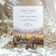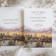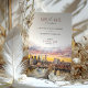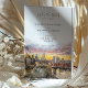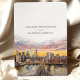 Det här vackert designade spara-the-date-kortet belyser en elegant av New York City-skylten med Brooklyn Bridge som kontaktpunkt. En bedövande vattenfärgsolnedgång fungerar som bakgrund och visar rikens toner i persikor, , lavender och guld. De varma och vibrerande nyheterna smälter sömlöst in i citysslet och skapar en romantisk och sofistikerad atmosfär. Den moderna typografin, i skuggor av ro och svart, tillför en förfinad beröring som helt kompletterar teckningen. Det här spara-till-datum-kortet passar utmärkt för bröllop i städerna och är en introduktion till firande i stadskärnan, där modern elegans kombineras med konstnärligt flinat. Solnedtonerna och det detaljerade citysslandet gör det både till en praktisk påminnelse och till en vacker keepsaké.