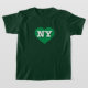 Den här t-shirt-skjortan har ett pulserande grönt-hjärta som innehåller det feta, vita, övre fodral brev NY, förkortningen officiell för New York, empire state.