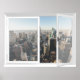 New York-skylinvyn, falska fönster för en fönsterlös kontorsvägg. Roligt, realistiskt optisk illusionsscenk poster för ett kontor eller en studiekur.