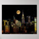New York Skyline på natten med full måndagskväll på NYC med skyscraper