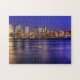 Foto på Manhattan-skylinen vid solnedgång från New jersey.